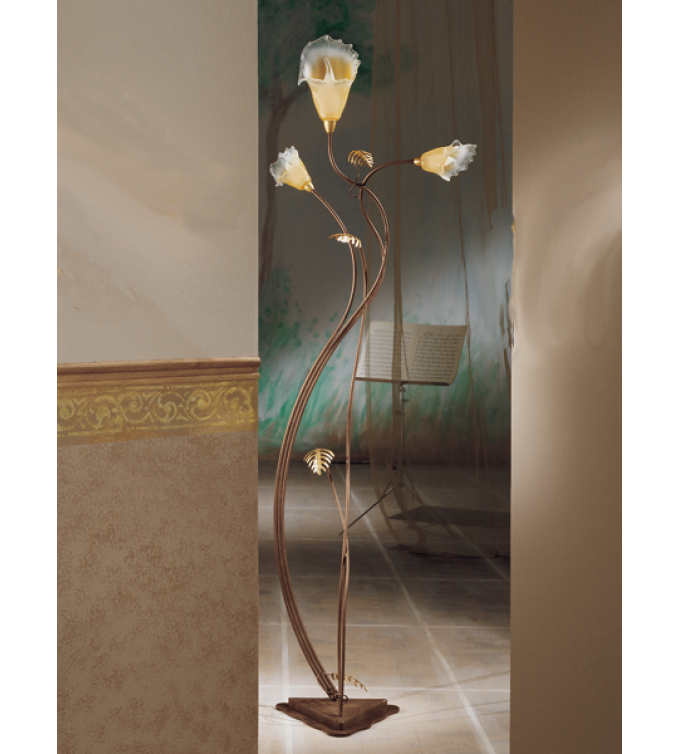 This floor lamp is part of the MITA collection which is known for its radiant details, tropical appeal, and long, flowing shape . The 61/3+2's incredible shades displayed on the beautiful fashioned iron arms create a rich look that can bring any room to life. This light fixture is a wonderful piece of art and a tribute to the talents of the Venetian and Florentine artisans that brought it to life. The 61/3+2 is well-suited for any area with space to house a hand forged masterpiece. To add to the effect, pair this floor lamp with another complementary Dragonfly's product like a table lamp or chandelier. The more the merrier. Available metal finishes include AGM, OA, RGO and RGV and available shades are 04, 05 and 93.