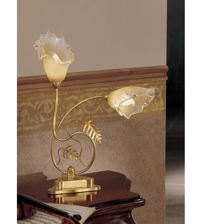 This table lamp is part of the MITA collection which is known for its radiant details, tropical appeal, and long, flowing shape . The 62/2's incredible shades displayed on the beautiful fashioned iron arms create a rich look that can bring any room to life. This light fixture is a wonderful piece of art and a tribute to the talents of the Venetian and Florentine artisans that brought it to life. The 62/2 is well-suited for applications that require concentrated local light for activities such as reading. This table lamp goes well on any table, whether the table is in the den, living room, bedroom, kitchen, or tasting room. To add to a space's drama, provide general lighting with a Dragonfly's chandelier, pendant, or other appropriate fixture and place this table lamp near by. Although it is small in stature, you will be surprised at how much attention this fixture commands. Available metal finishes include AGM, OA, RGO and RGV and available shades are 04, 05 and 93.