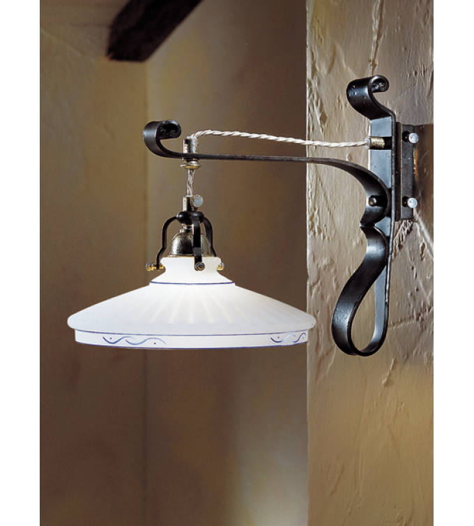 This wall sconce is part of the COUNTRY GREEN collection which is known for its craftsmanship, rich details, and rustic elegance . The 1884's Handmade Venetian shades and beautifully sculpted fixture frame complement one another and evoke a sense of old-world flare wile providing a dependable source of light. This fixture is an extremely unique piece of art, well suited for rustic spaces and more contemporary areas in need of character. The 1884 is well-suited for wall applications where lighting can be reflected off adjacent walls and ceilings to provide a room with indirect lighting. This wall sconce goes well in all rooms. When mounted in art galleries, this sconce becomes a focal point of the art collection while better illuminating the other pieces. When mounted in smaller rooms such as powder bathrooms, the fixture floods the small space with a soft, warm light and adds elegant character to the space. Available metal finishes include GA and RG and available shades are 40, 20, 50 and 90.