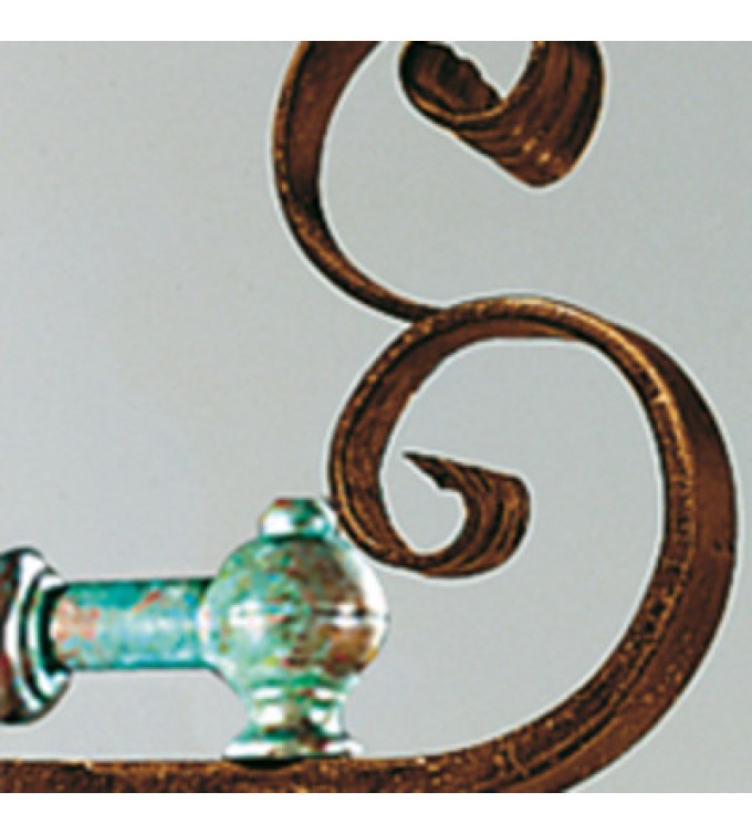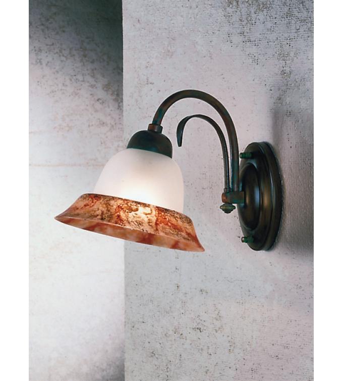 This wall sconce is part of the RODODENDRO collection which is known for hand painted shades and ornamental ironwork . The 984's handcrafted shades are the focus of this fixture. It's ironwork acts as a subtle accent and helps tie the fixture's overall appearance and shape into any space. The 984 is well-suited for wall applications where lighting can be reflected off adjacent walls and ceilings to provide a room with indirect lighting. This wall sconce goes well in all rooms. When mounted in art galleries, this sconce becomes a focal point of the art collection while better illuminating the other pieces. When mounted in smaller rooms such as powder bathrooms, the fixture floods the small space with a soft, warm light and adds elegant character to the space. Available metal finishes include VR and available shades are 70, 75 and 90.